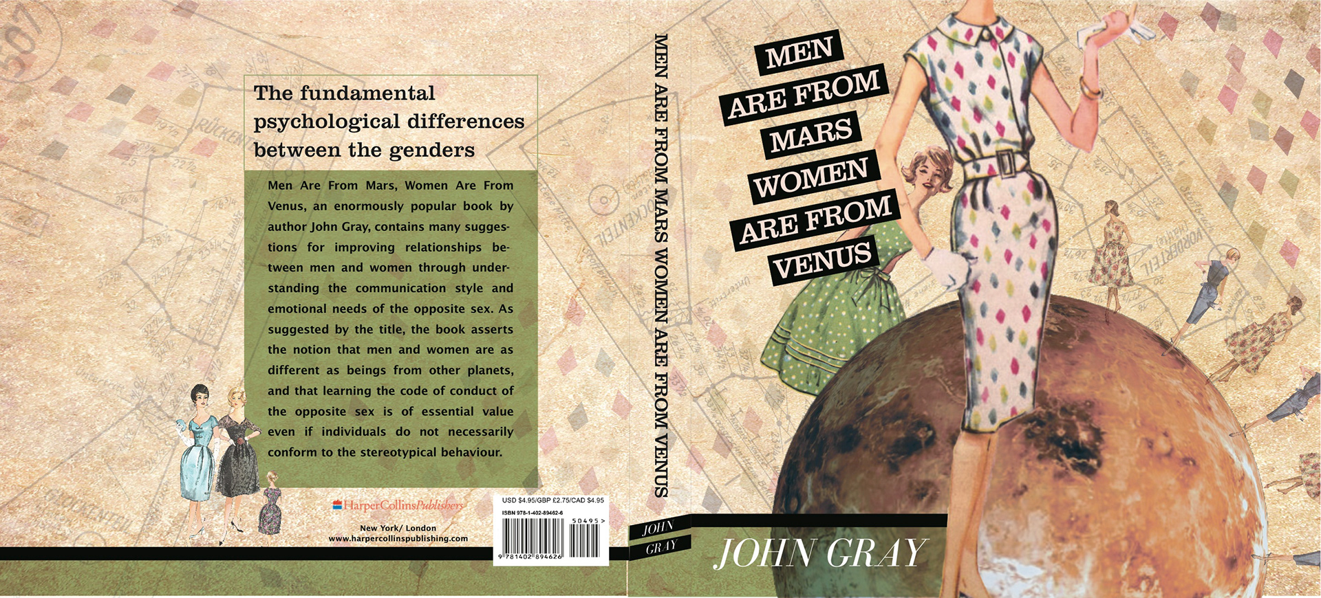 This was an experimental book cover design that I created for the book, "Men are From Mars Women are From Venus."